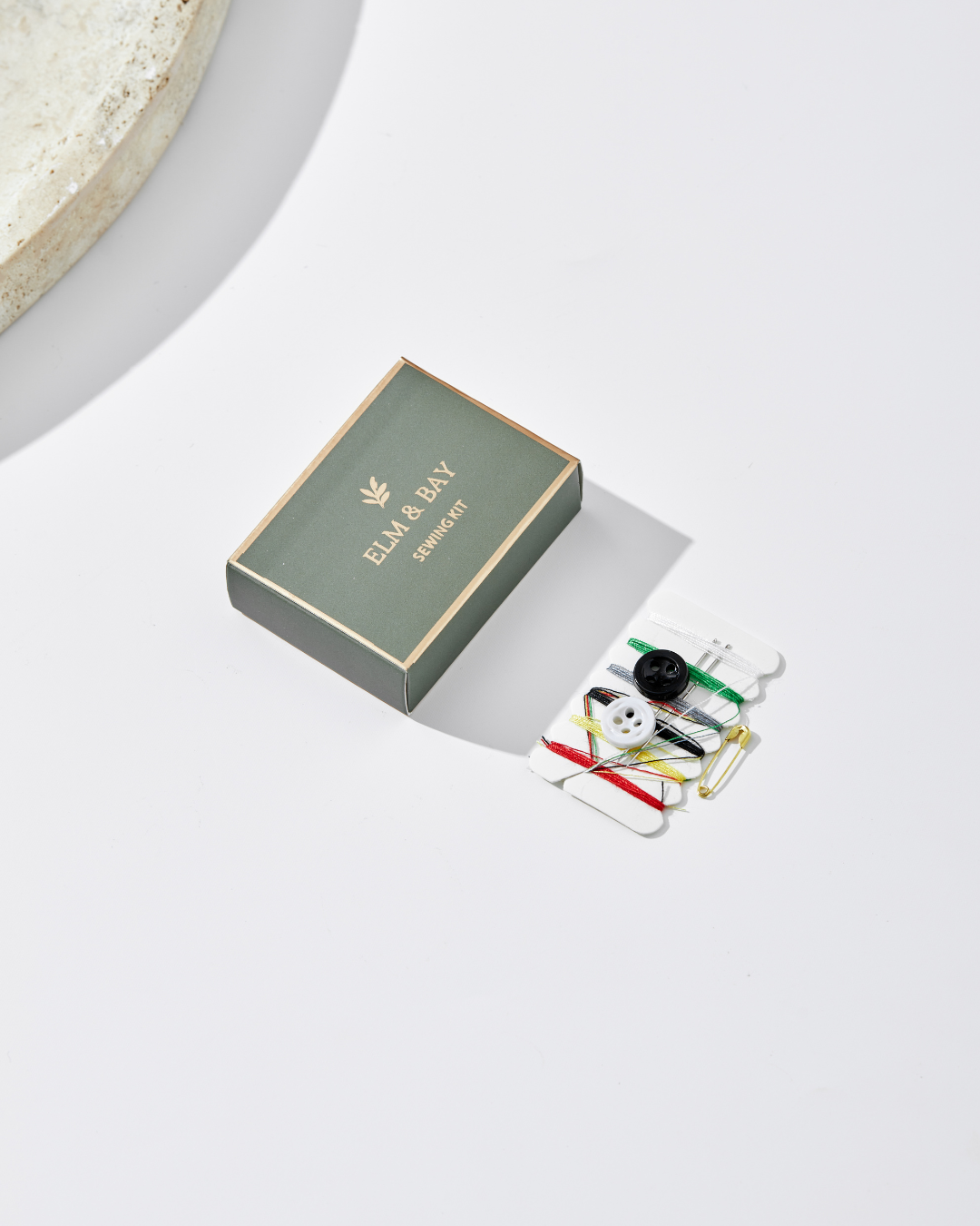 A timeless essential for the thoughtful host. The Elm & Bay Sewing Kit provides simple practicality in a refined presentation, small details that make a lasting impression.
