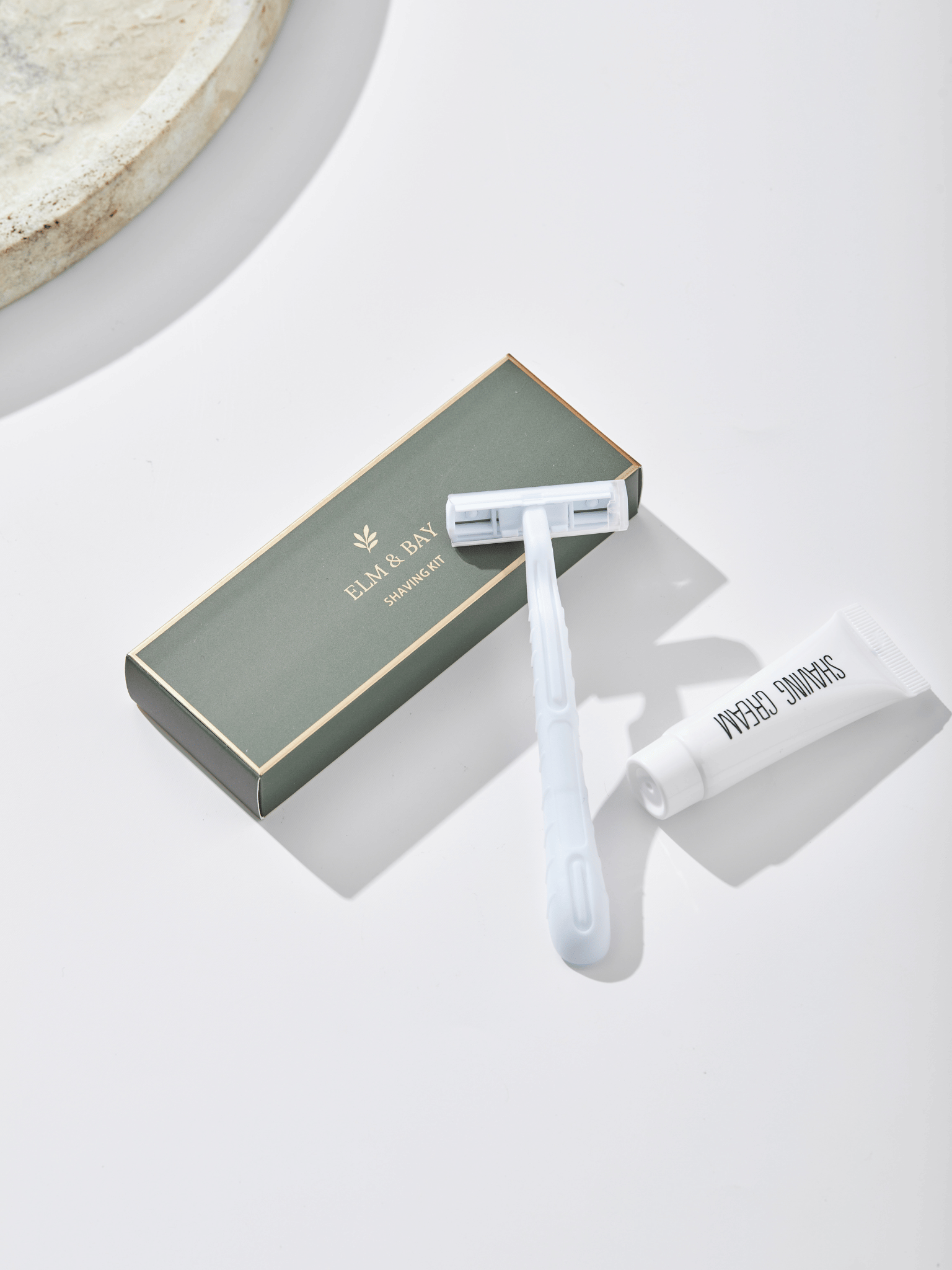 A refined essential crafted for comfort and care. The Elm & Bay Shaving Kit provides guests with the convenience of a clean, smooth shave, presented in elegant, minimalist packaging.